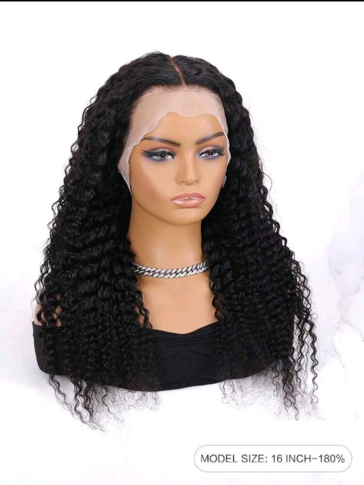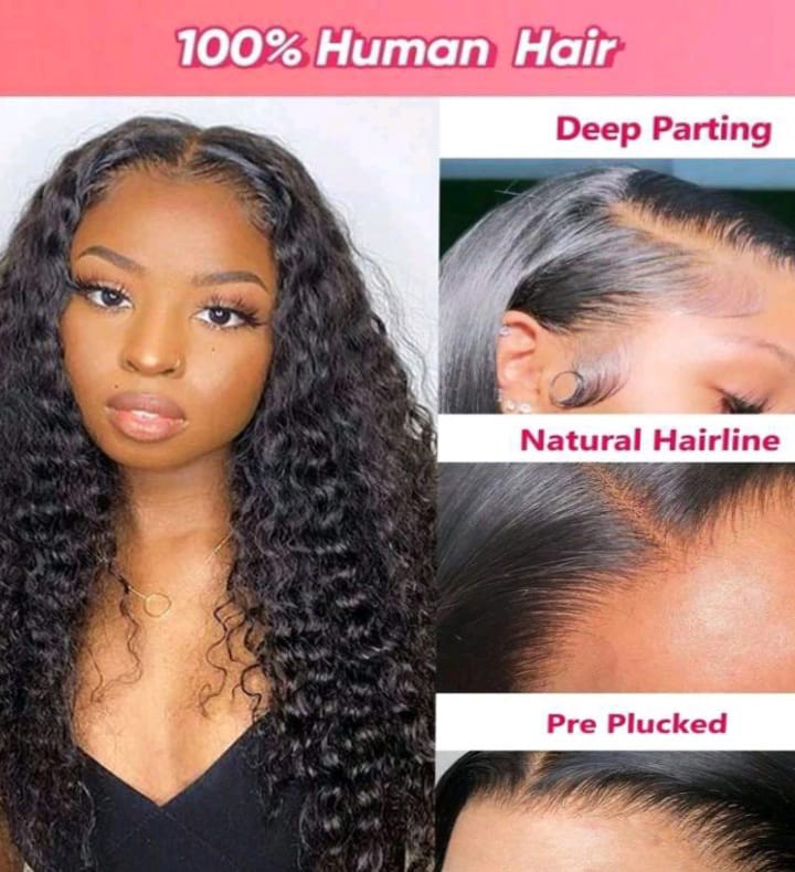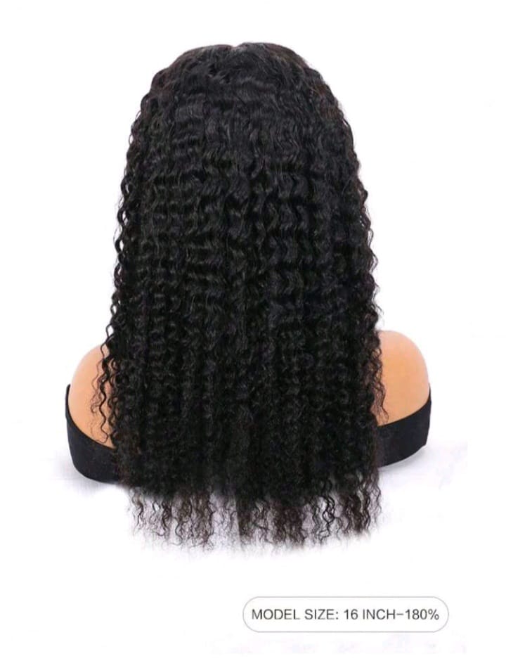13x4 Deep Wave Lace Front Wig Human Hair 16 Inch Transparent Frontal For Women Natural Black Color Wig With Pre-Plucked Hairline Unprocessed Raw Human Hair Wig