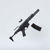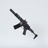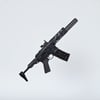 A short 5.56 caliber rifle, for special forces. One of the cool looking ones. Includes a built in silencer and a red dot sight. Trigger, stock, safety, bolt, bolt cover etc also rigged for more realistic pictures. The prop is converted and rigged for use in DAZ.
