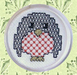 This cheerful robin with his bright red breast and gold-tipped beak is sure to raise a smile. Quick to stitch and easy to personalise, he's a joyful addition to your holiday cards or gift tags.