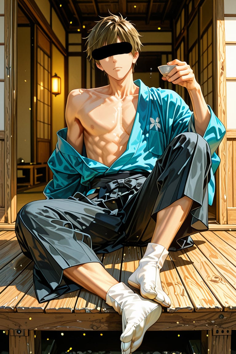 日本の正月をテーマに、着物を着用している男性を、キャラクターごとにお任せ作成しました。男らしいキャラクターの魅力を思い切って表現しました。
