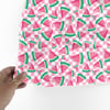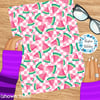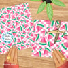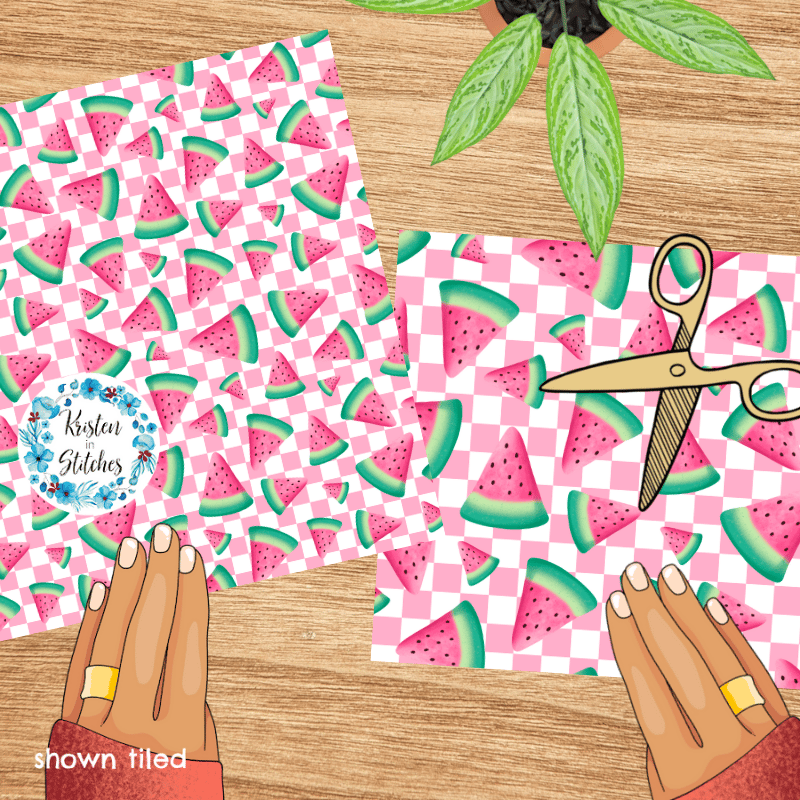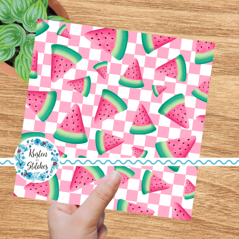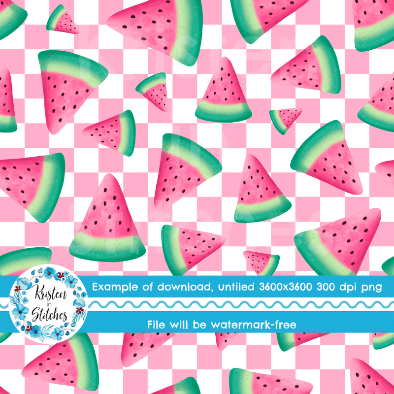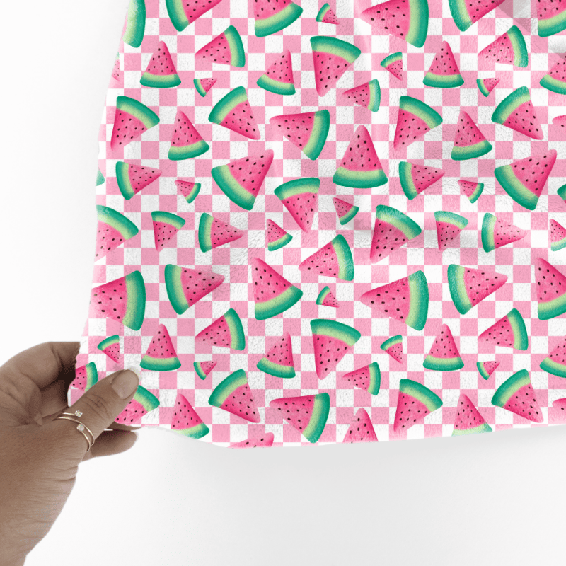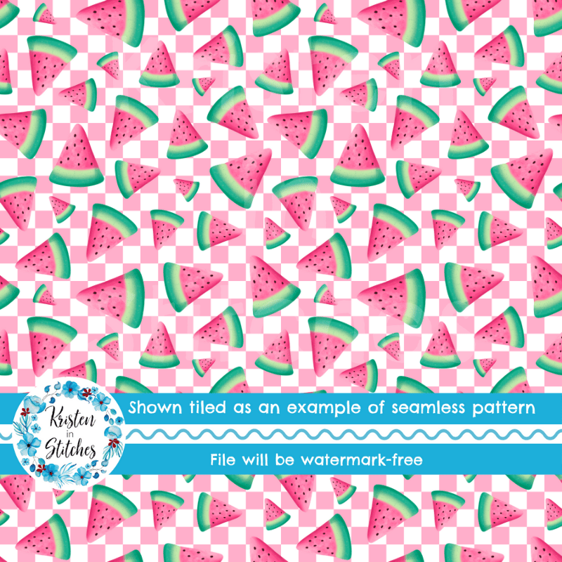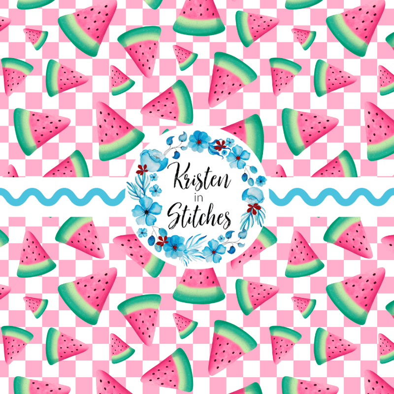 Sweet summer watermelon on pink checkerboard.