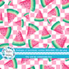 Summer Watermelon Fruit Seamless Pattern, Pink Checkerboard