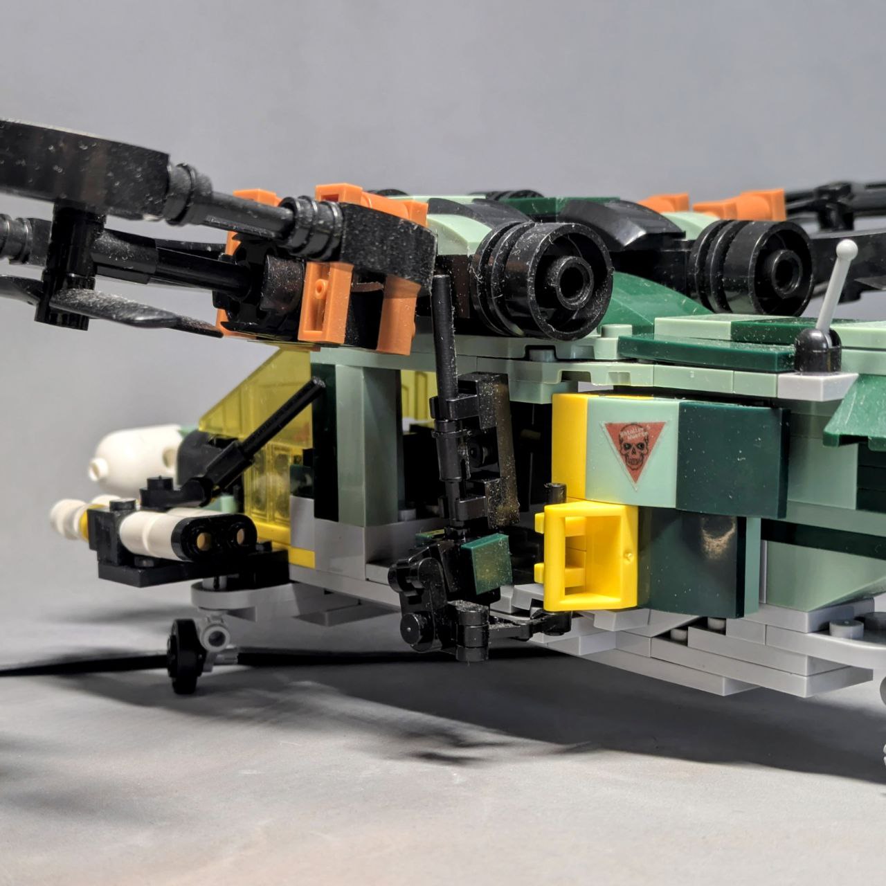 In the attack it has two guided missile bays, in this case four thermobaric missiles in the fight against the bugs and the possibility of adding 12.7 caliber heavy machine guns and 20 mm autocannons to the doors
