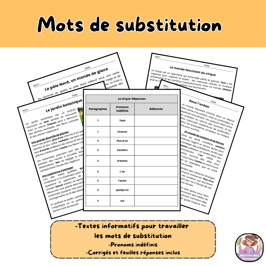 Textes informatifs-Mots de substitution-Pronom indéfinis