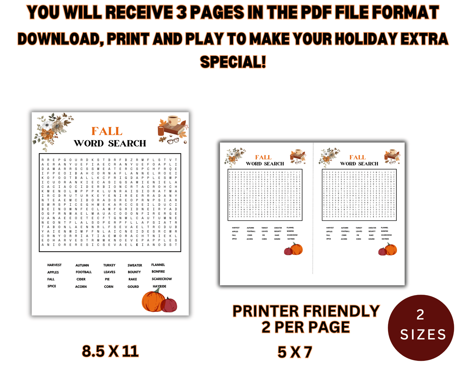 This Fall Word Search game is the perfect holiday game that blends fun and education.
