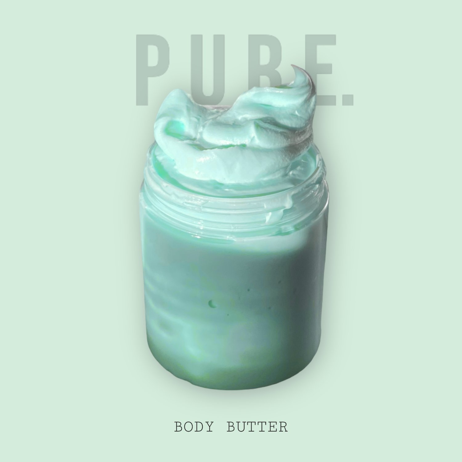 Our innovative addition, blue spirulina, adds a unique touch to "Pure" Body Butter. This natural algae extract is rich in essential nutrients and antioxidants, helping to promote a youthful appearance and fight against signs of aging. Its vibrant blue hue adds a whimsical element to your skincare routine, creating a truly indulgent experience.