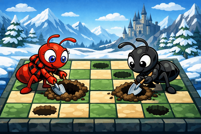 Un jeu de plateforme ou deux adversaire jouent au tour par tour, deux actions simples (bouger, creuser une case), veuillez lire les régles du jeux