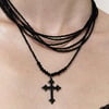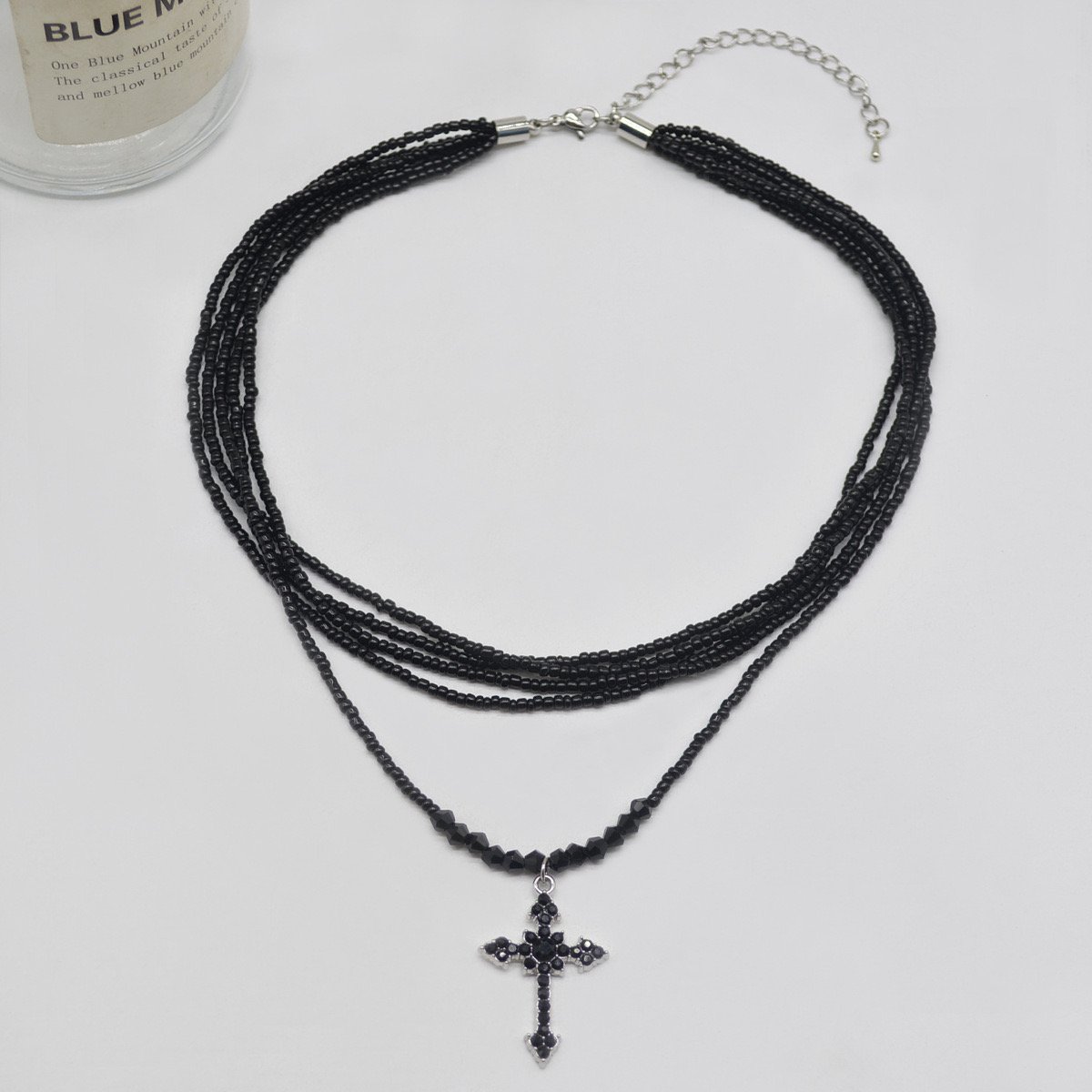Gothic retro handmade beaded multi layer cross pendant necklace choker