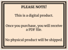 This is an instant digital PDF printable file. NO physical item will be shipped to you.