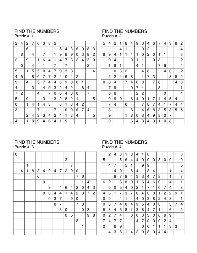 Il s'agit là, en anglais, de 200 jeux constituants à trouver les nombres.
