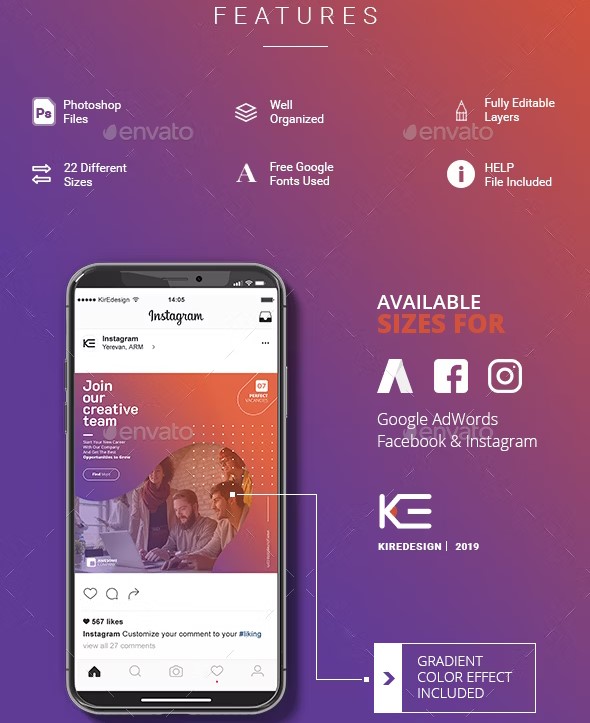 22 different sizes in separate PSD files, grouped, named and fully editable PSD files. Easy to add an image with smart objects. Easy to change the text and the color. Help file included, 72 dpi, RGB color mode.