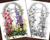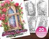 20 Blooming Windows Coloring Book, Adults kids Instant Download -Grayscale Coloring Book -Printable PDF, Window Flowers, Fairy Windows
