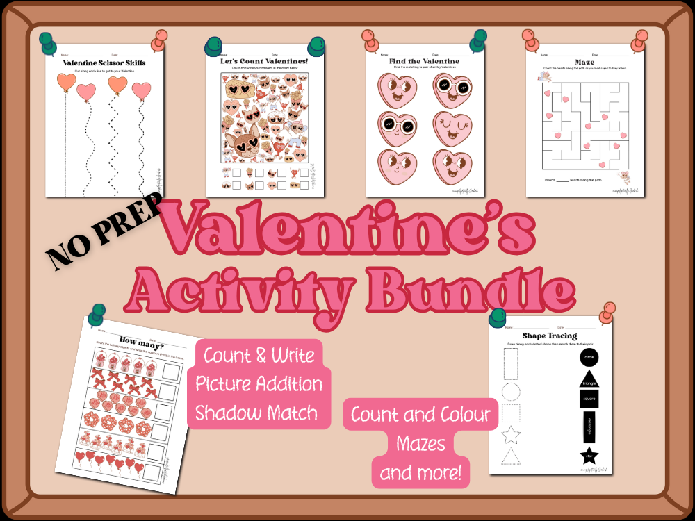 This fun 25 page bundle of prep free worksheets contains: Count & Colour, Picture Addition, Scavenger Hunt pages, mazes, cutting practice and more gives your students different ways to work on all those skills!