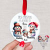 3 PNG files; family of 3 penguins, family of 3 snowmen, text file. Separate designs so that you can add your own text if you prefer.