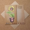 Handmade decoupage card with metal gardening trowel charm. Sentiment reads "Thank you for everything".
