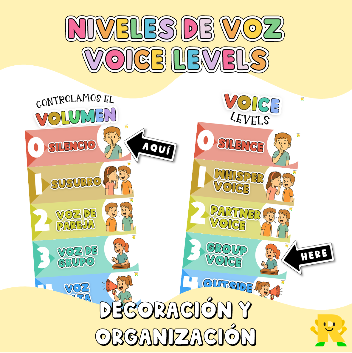 Con este material podrás trabajar los 5 niveles de voz en el aula de forma visual, clara y divertida, adaptado especialmente para niños y niñas de Educación Primaria. Incluye dos versiones: castellano e inglés.