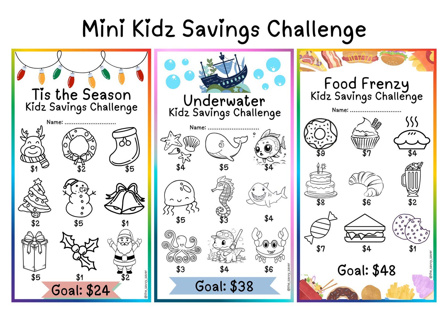 Three Printable Mini Kidz Savings Challenges. A total savings of $110!