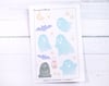 Adorable ghostly Halloween sticker sheet that you can print and cut at home. Includes 4 ghost stickers, 2 bat stickers, 1 grave sticker, 1 lantern sticker, plus moon and stars stickers. All you need is a printer and sticker paper.