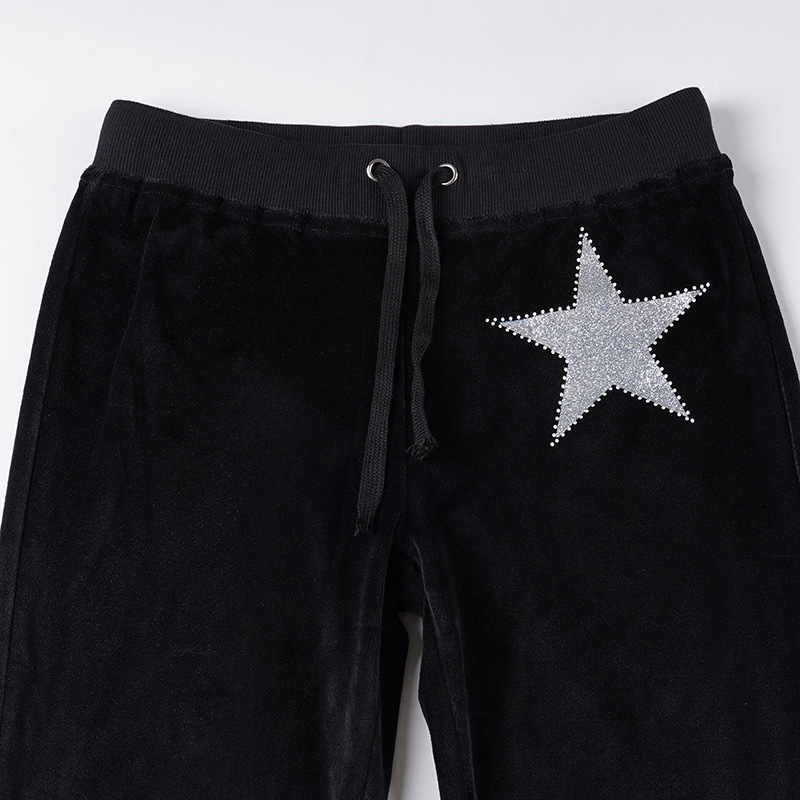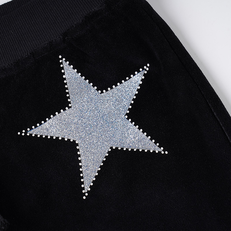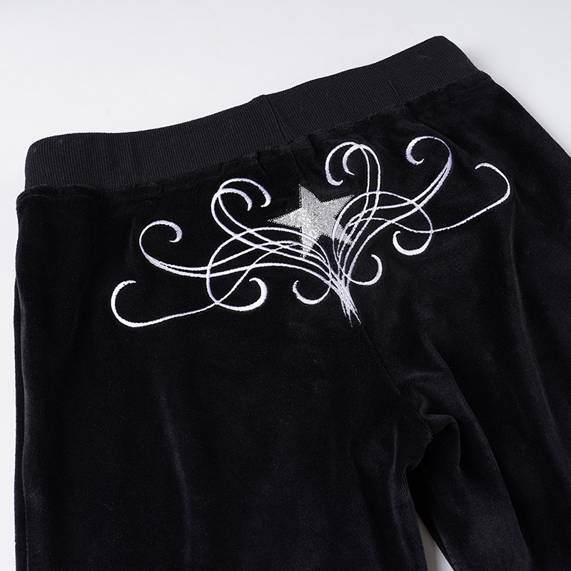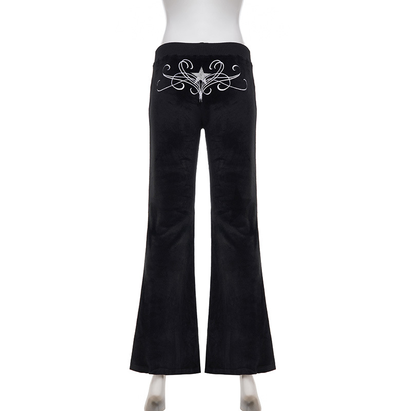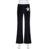 Y2K retro silver star embroidered black lace-up flare casual pants