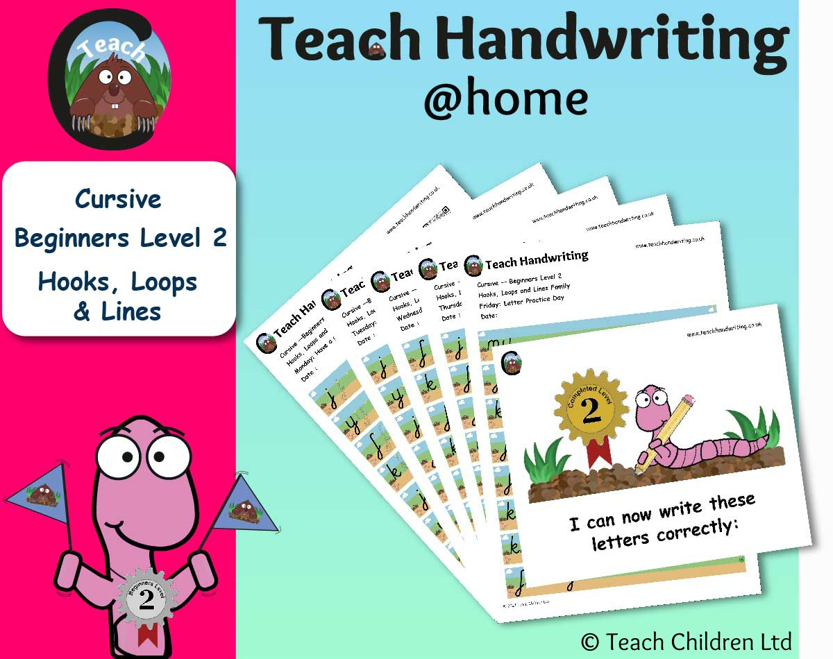 Cursive Beginners Level 2 – Hooks, loops & lines family: j y f k
