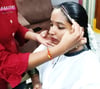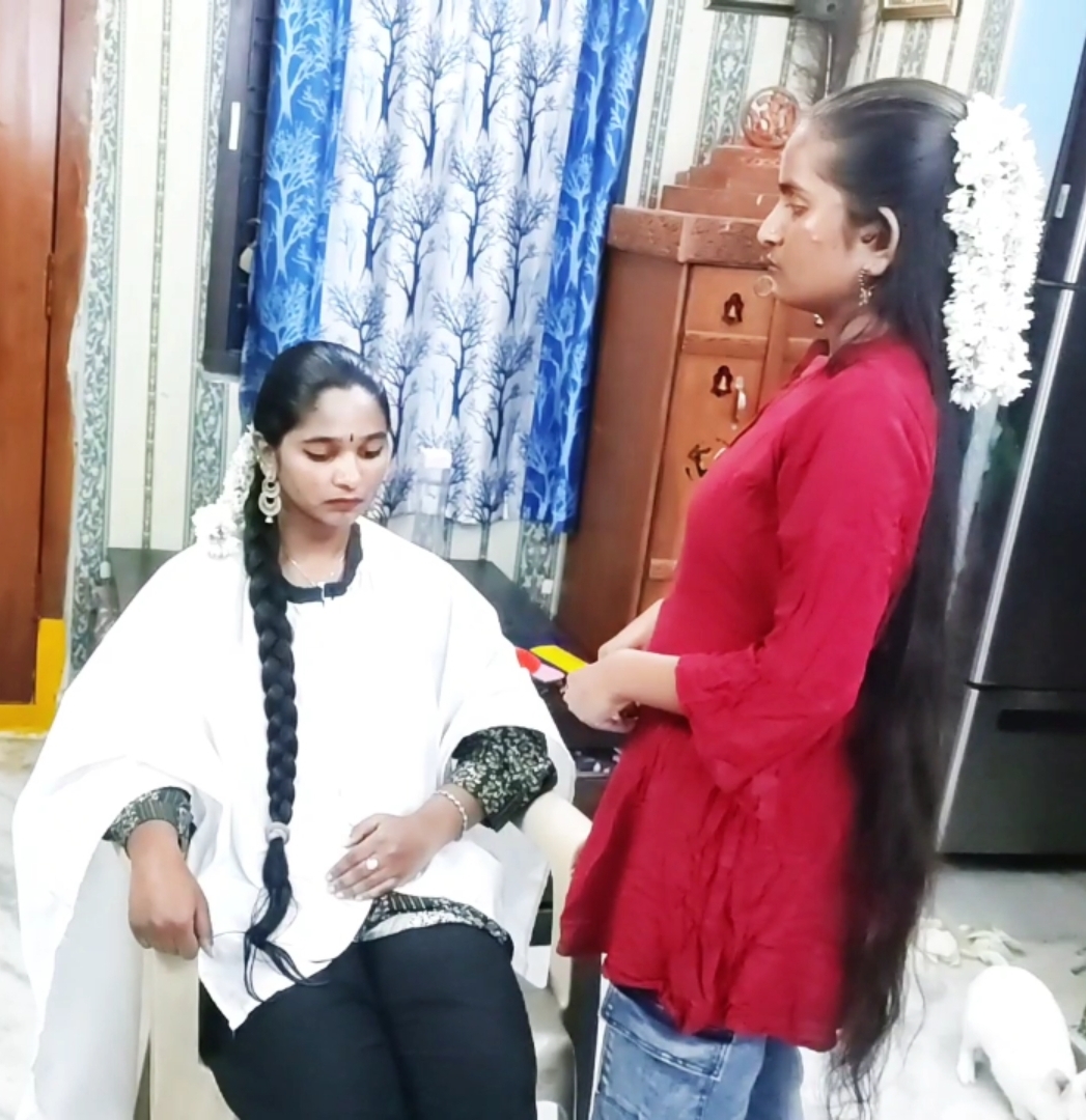 Shaving Head Scissors & Razor Play in Wethair Water Palming Combing to eachother