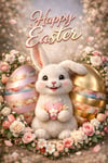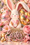 Celebrate Easter with this elegant floral Easter bunny wall art featuring a sweet fluffy bunny holding a heart surrounded by luxurious pink flowers and decorative Easter eggs in soft blush and gold tones. This design blends spring florals, pastel elegance and modern Easter decor to create a stunning seasonal statement piece.