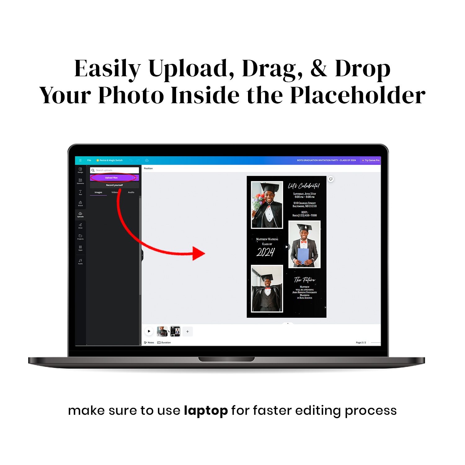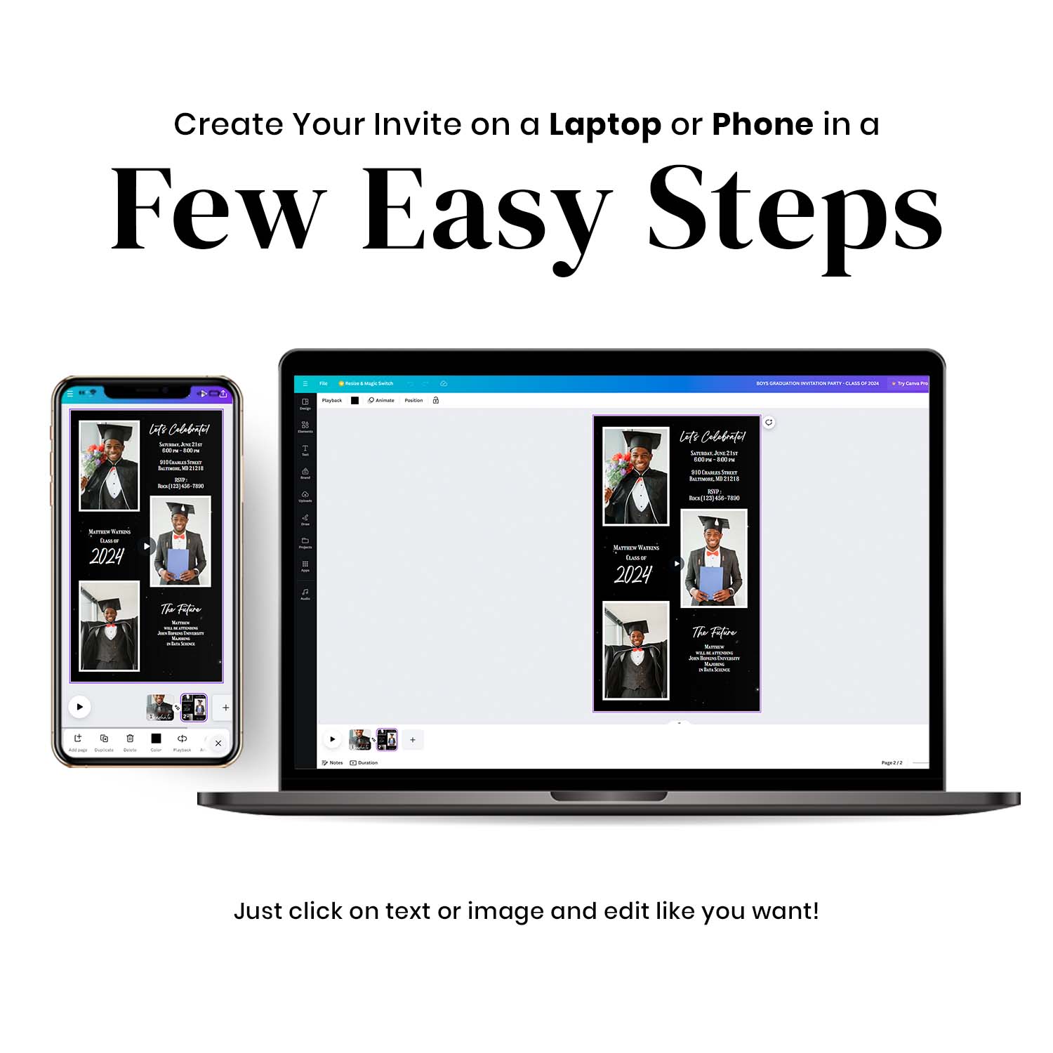 Boys Graduation Party Invitation Video Canva Template