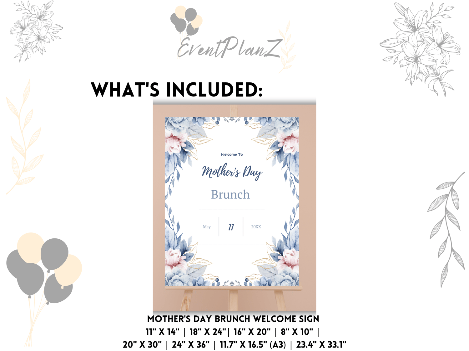 1.Mother's Day Brunch Welcome Sign 18" X 24" / 16" X 20" / 11.7" X 16.5" (A3) / 8" X 10" / 11" X 14"