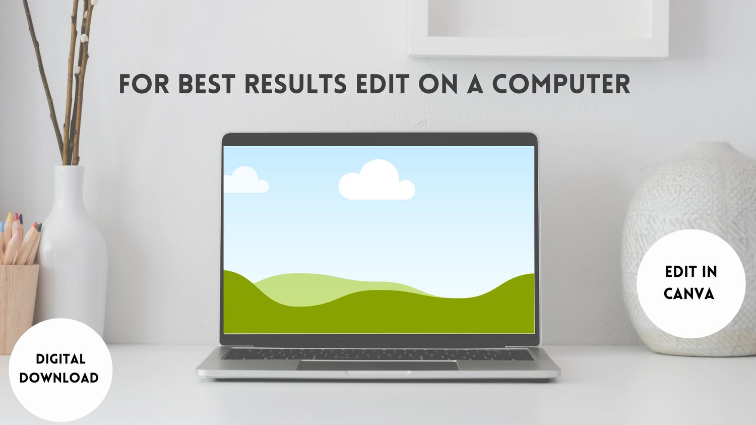 After purchase, you will be provided a PDF with a link to your template by email. You may need a program such as Adobe Acrobat to open your PDF. Once you follow the link, you'll be directed to Canva to edit your template.