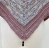 The shawl is knitted from the top down in one piece, starting with a garter stitch tab. After set-up, this shawl shape is formed by increasing 4 sts on every right side row at the two outer edges and on either side of the central spine of the shawl.