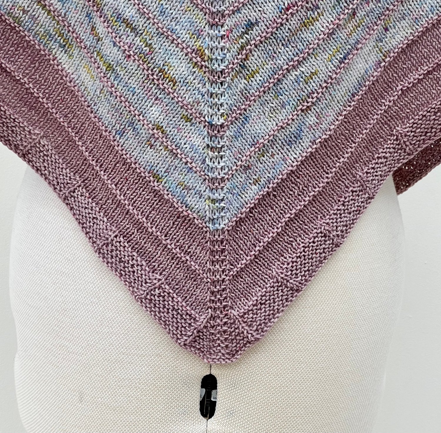 Designed to showcase beautiful yarns, the Altair Shawl is a classic top down triangular shawl with a deep V-shape that is ideal for layering. A contrasting shade is used for the garter stitch ridges and the lower border.