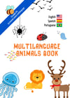 Mult ilanguage book for kids. Animals names english spanish portuguese. Educational book printable.
