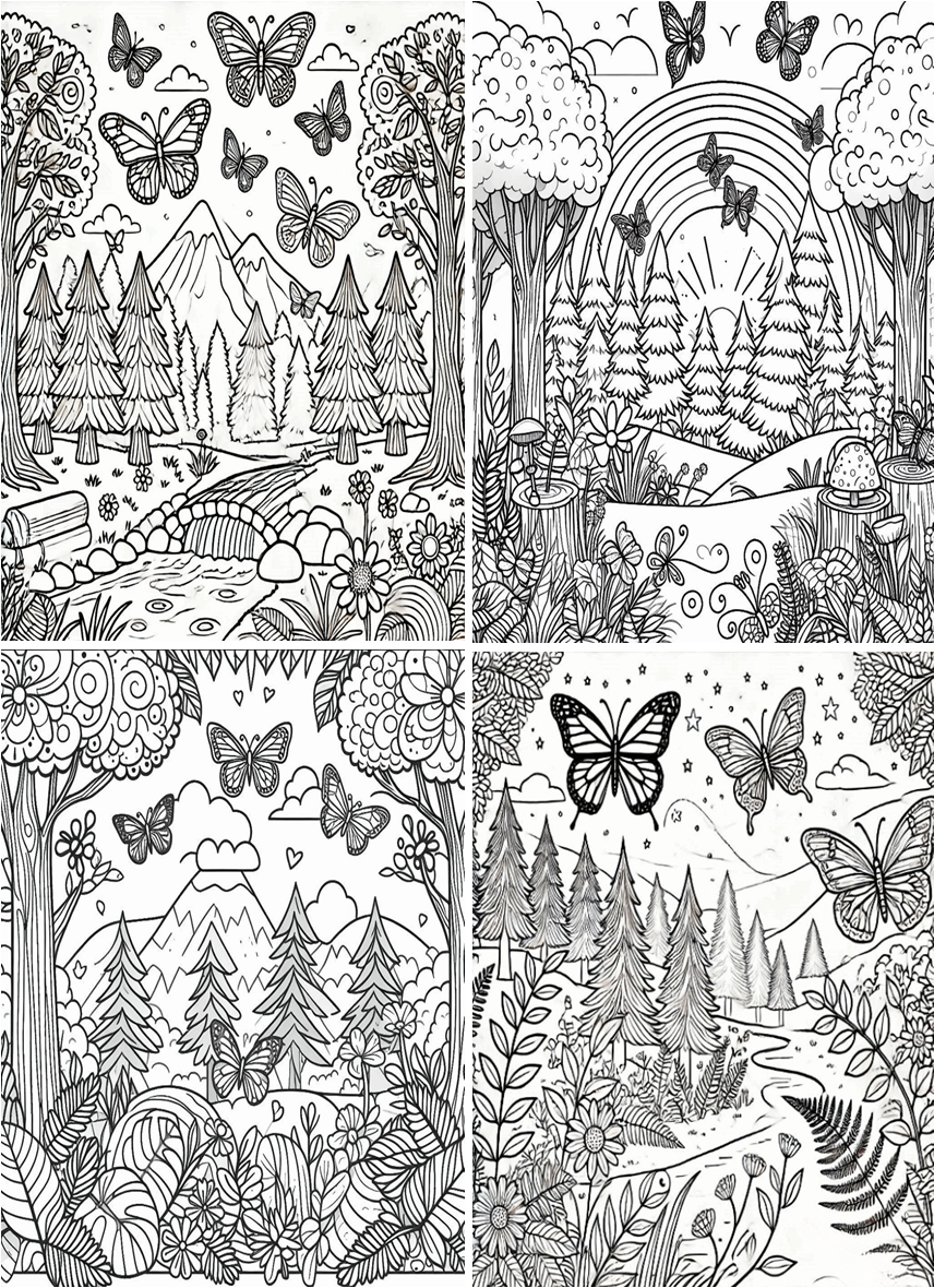 Forests & Butterflies Adult Colouring book - Over 50 Pages