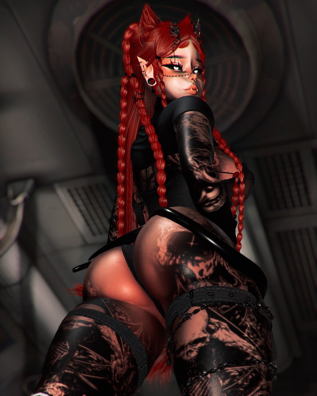 Toggles: TOPS- tube top, tank top, shirt, bra, hoodie, and bodysuit BOTTOMS- panties, leggings, and panties 2 SHOES- shoes, and heels ACC- pasties, arm barbed wire, body barbed wire, choker, face chain, fp, garter, garter 2, glasses, glove, glove 2, head stuffie, knives, leg barbed wire, necklace, rings, socks, gag, and mouth chain DEMON STUFF- horns, ears tail, and wings SWAPS- acc swaps, eyes 1 (8), eyes 2 (8), skin (6), and hair color (11) and swaps (4) EXTRA- interactions ( kiss, boop, headpat, highfive, and bum slap), SPS and GOGO LOCO.