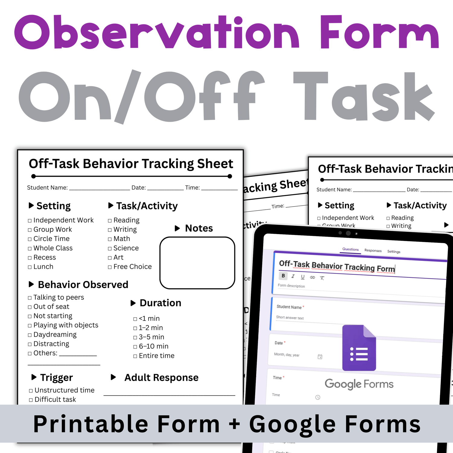 This observation form comes in both a printable and Google Form version, making it simple to collect consistent, detailed data in any setting.