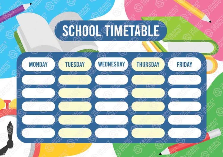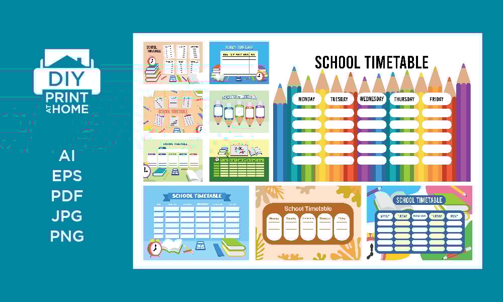 Back to school will be fun with DIY School Timetable! Reduce time and cost to create design, print with your own printer and make your children happy. No need special software editing and design skill, just print it yourself with your own print.