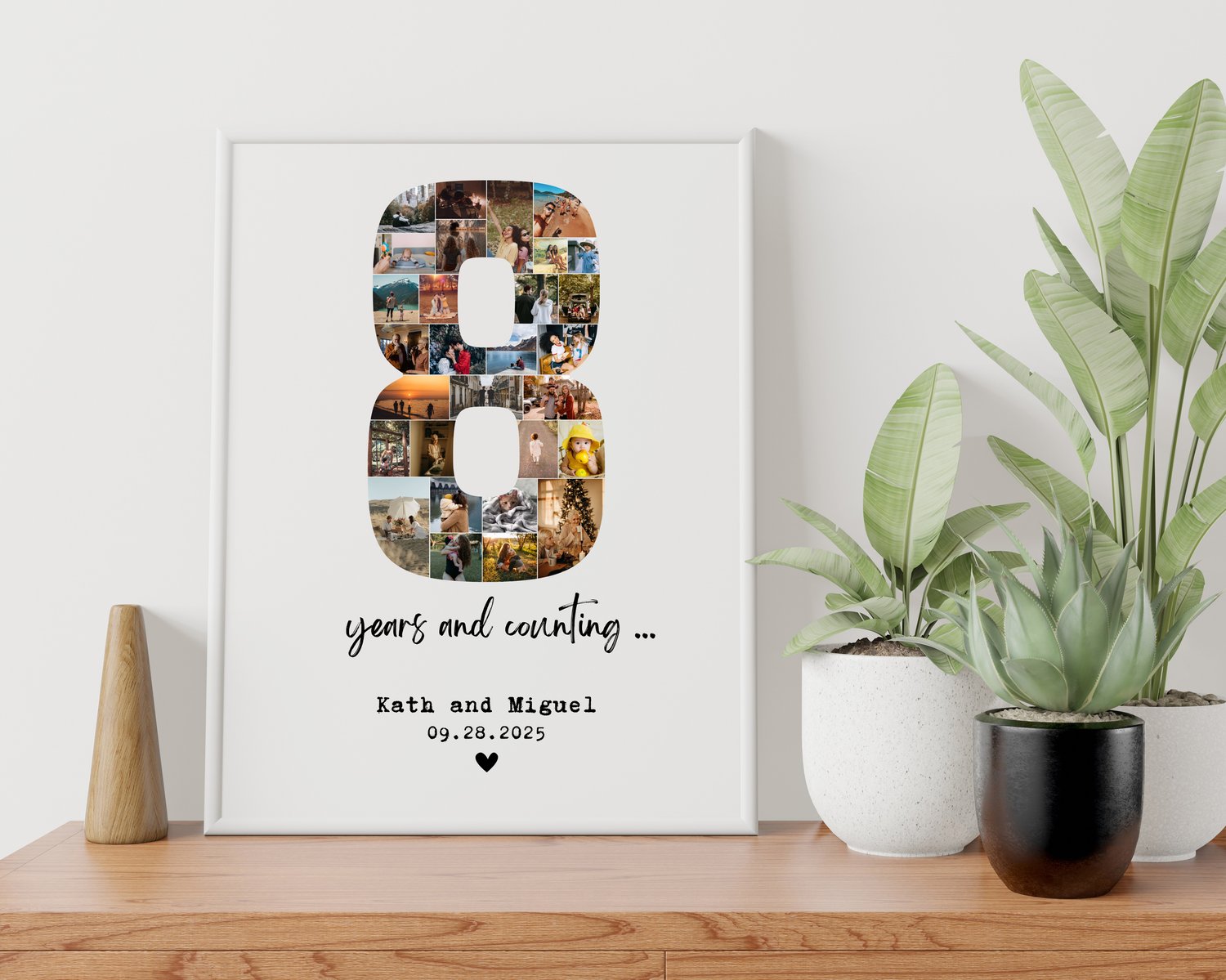 DIGITAL 8th Anniversary Photo Collage Template Gift for Boyfriend, 8th Birthday, Digital Printable