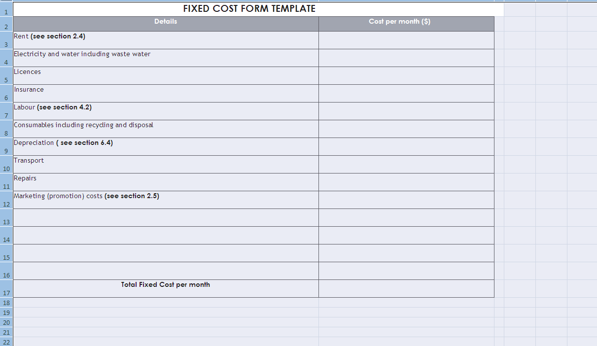 Fixed Cost Structure Template – Business Planning