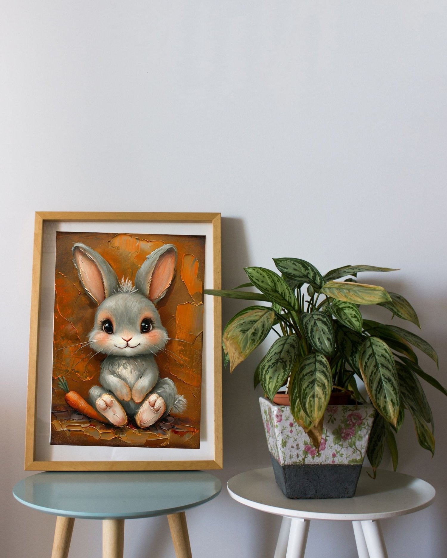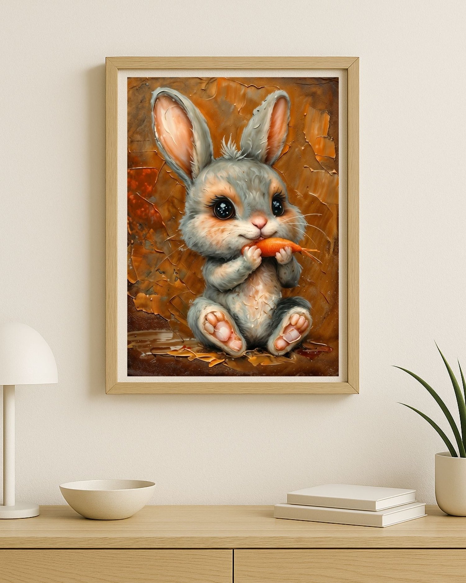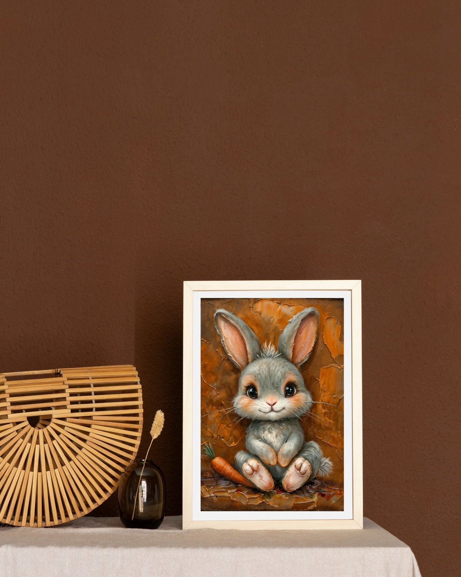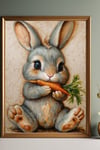 Adorable Bunny with Carrot Wall Art – Printable Animal Illustration | JPG Download | Sizes: 12x18, 16x24, 24x36 Inches