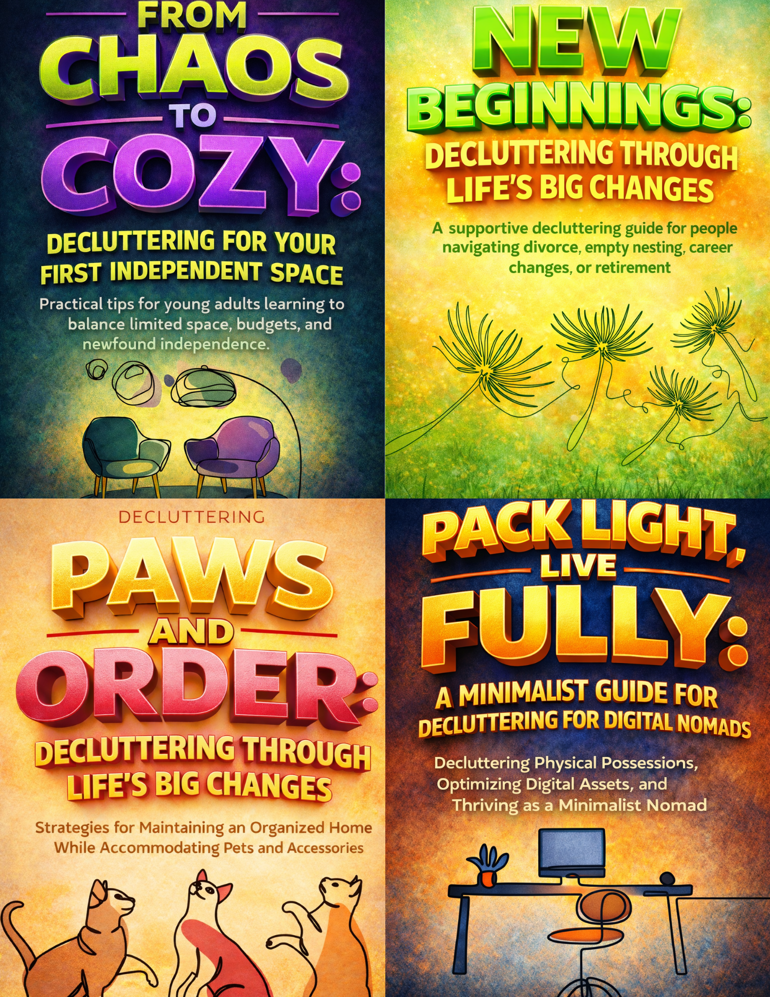 This book dives into practical strategies for decluttering, organizing, and designing your living space with your pets' unique needs in mind. From creating pet-friendly zones and smart storage solutions to handling pet hair and managing odors, every chapter is packed with actionable tips to transform your home into a harmonious haven.