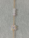• Élément central composé de perles en quartz rose (4 mm), d’un cristal Swarovski rose clair et d’un médaillon tortue doré
