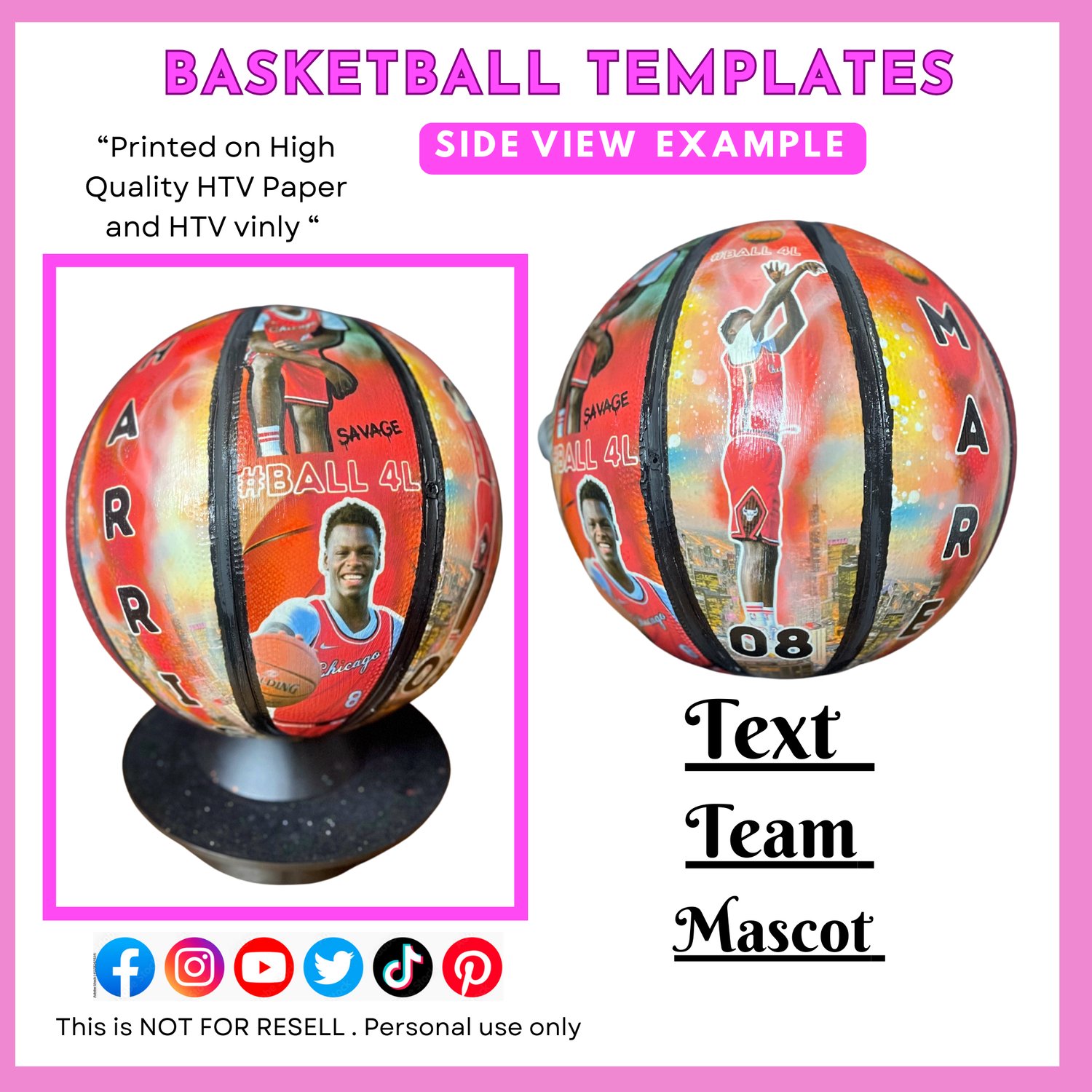 - 4 Cutout Templates: Move and resize the template to fit any area of the basketball (left side, right side, bottom left and right panel) for complete flexibility no worries about flipping around your image.