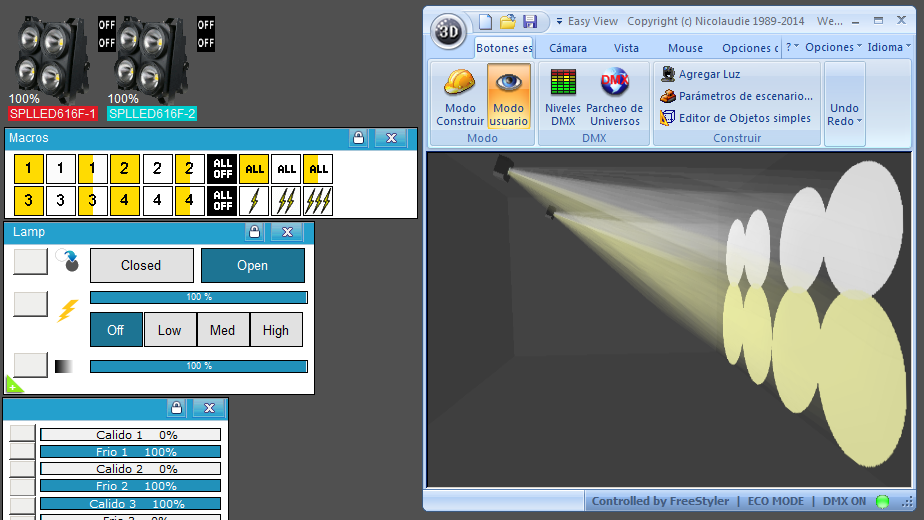 Esta Librería SSL2 está optimizada para trabajar con Magic 3d Easy View. Es decir para ver una representación 3D de las secuencias que estemos realizando con Freestyler, QLC+ o cualquier otro soft que se conecte con Magic 3d.