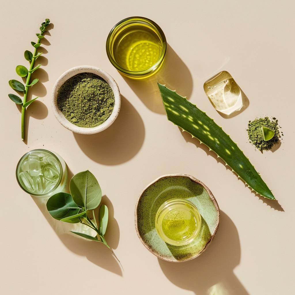 Neem & Aloe Vera Ayurvedic Flatlay – Luxury Skincare Visual