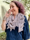 This asymmetrical triangular shawl begins small and may be adapted for any gauge or weight of yarn.