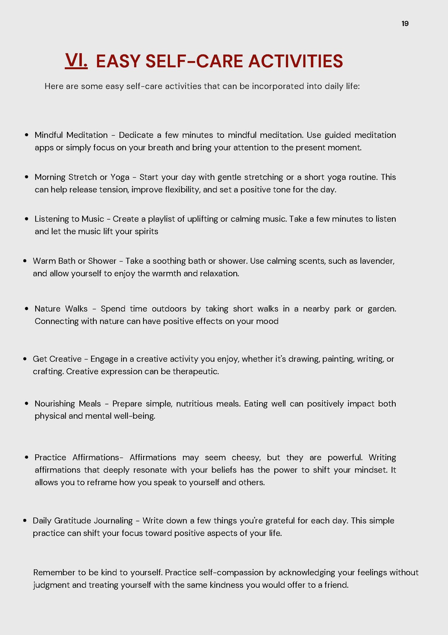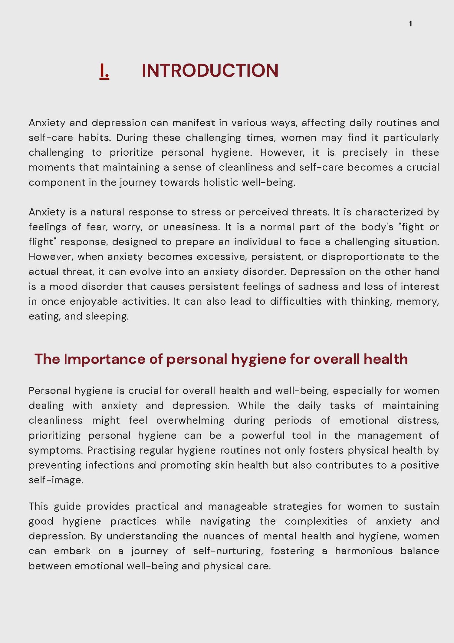 This Self-Care e-book is the ultimate resource for developing a self-care routine that promotes women's mental health as they navigate anxiety and depression. With its delicate approach and practical tips, this 'how to' guide empowers women to be kind to their mental health while cultivating a nurturing self-care routine.