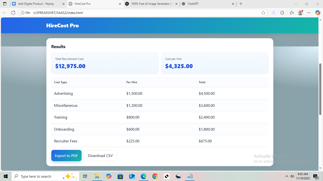 Whether you're planning next quarter’s hiring budget or preparing a cost analysis for management, HireCost Pro gives you instant clarity.