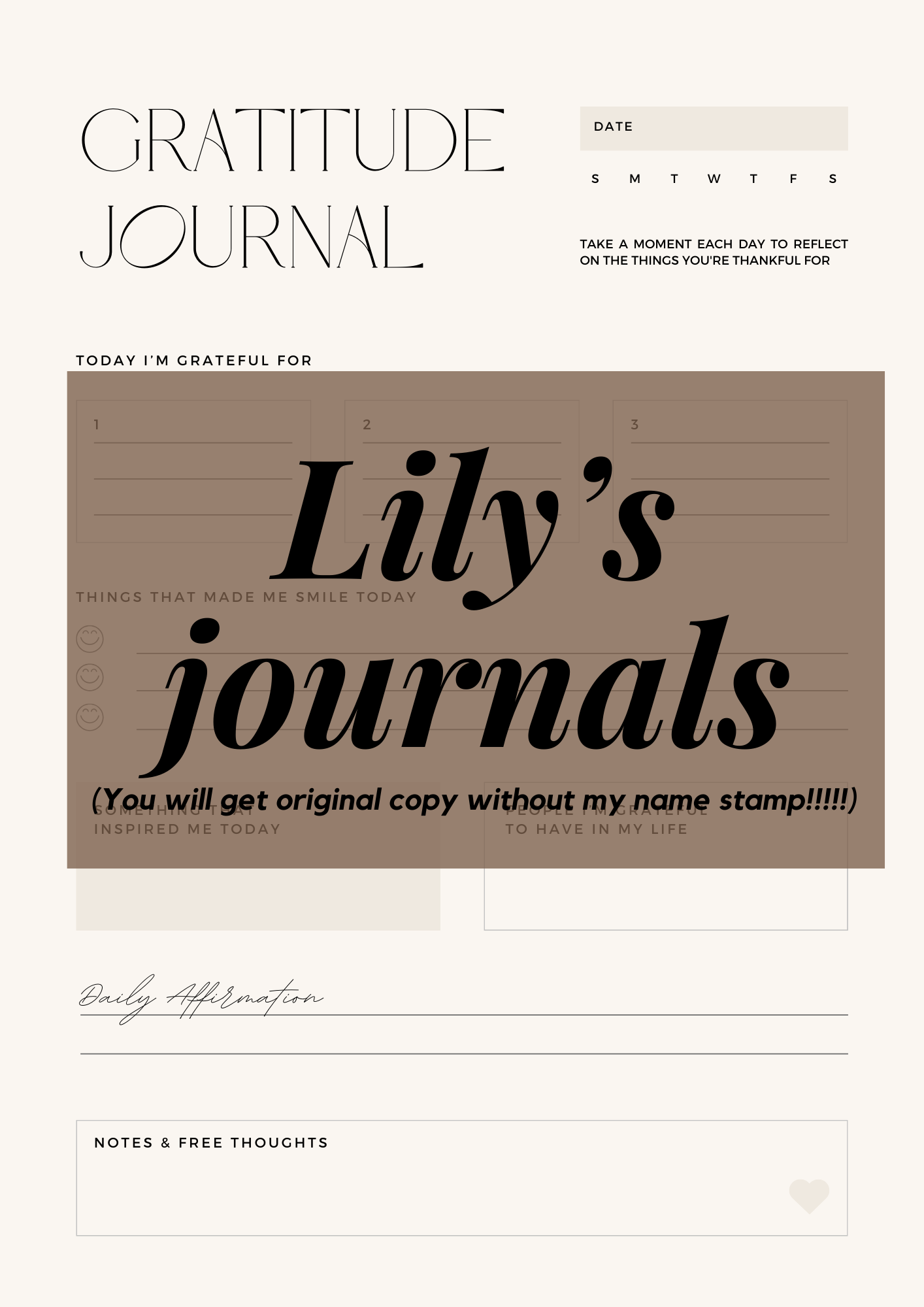Practicing gratitude is so important for our daily lives! This gratitude journal has changed my outlook on life in so many ways and I hope it can do the same for you! This is the month long edition so it is a total of 31 pages! As always my name stamp will not be on your copy and Happy Journaling🎀