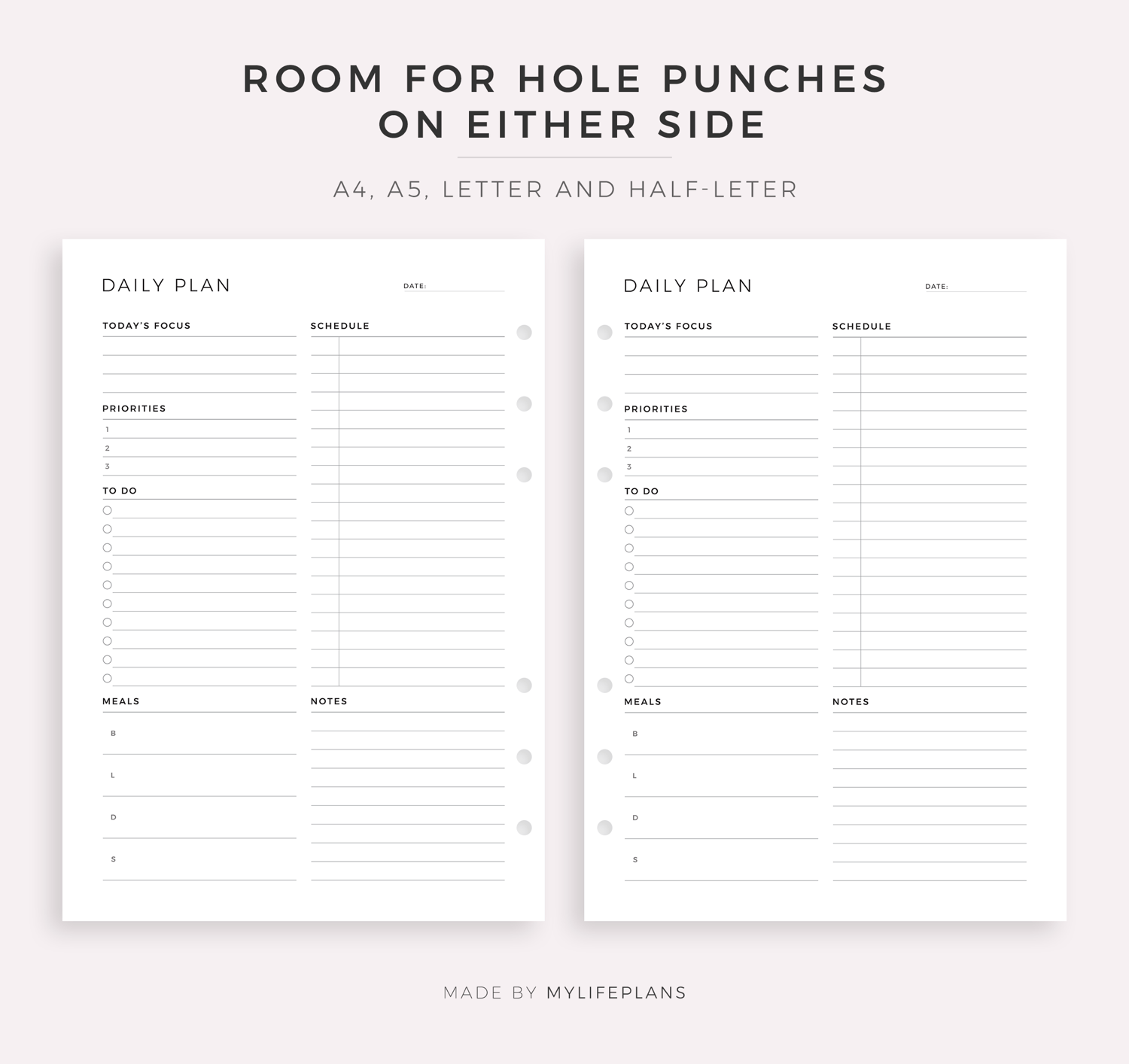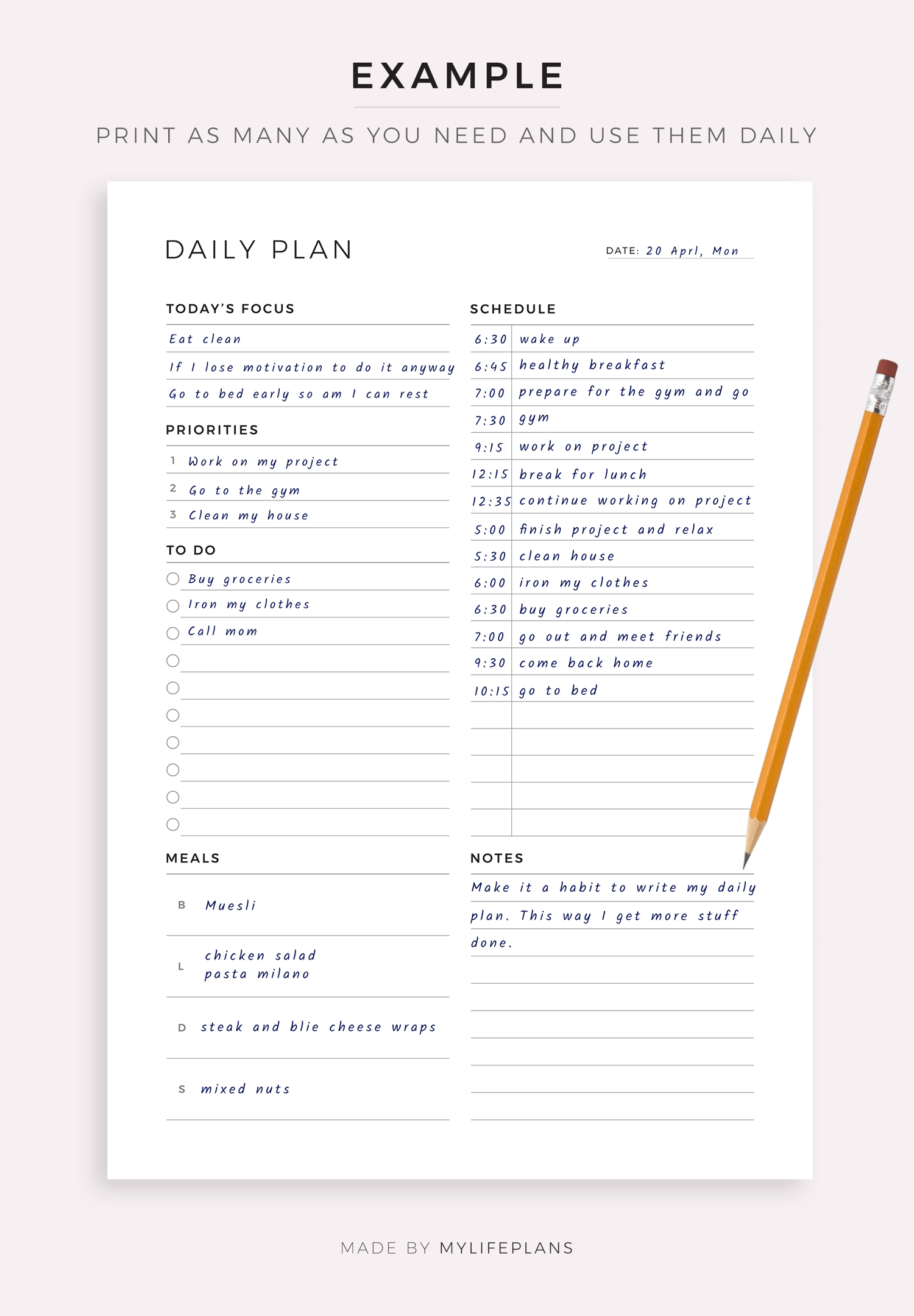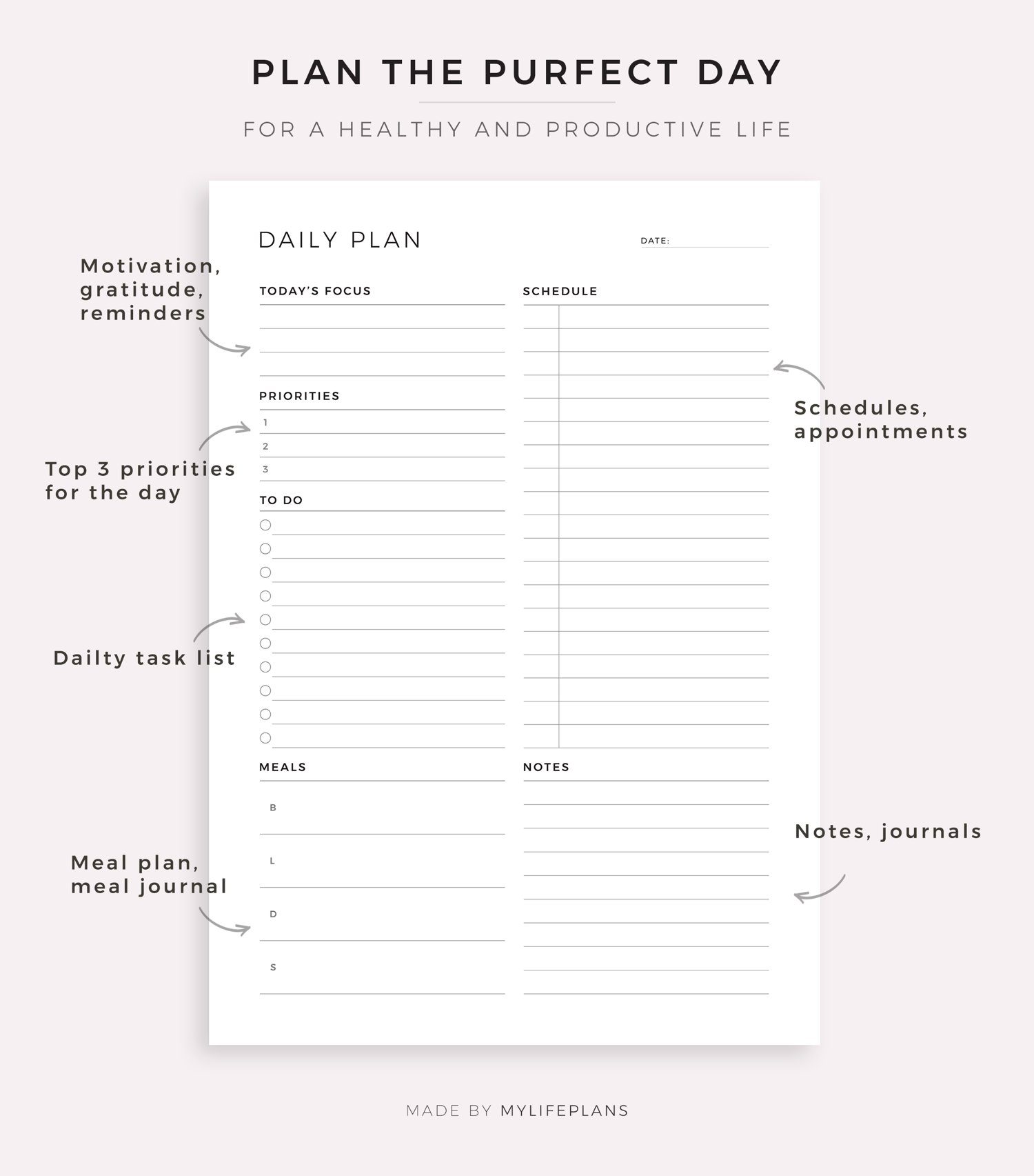This is a printable daily planner — just download, print, and start using it right away.
