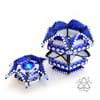 This little lidded pot started out as an experiment in shaping and layering, and was orginally intended to be square. However, it was far easier to make a six sided shape with a 14mm rivoli, and this is the result of what that experiment produced. It reminds me of the little pagoda in the willow pattern plates that I grew up with, and the spikes on each corner remind me of the fences and paths zig-zagging across the china plates.As you can see there are many shades involved, so you can make it as bright and colourful as you want, or stick to shades of one colour. It’s up to you.